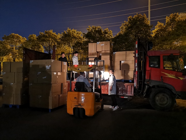 物料团队通宵达旦装车发货
